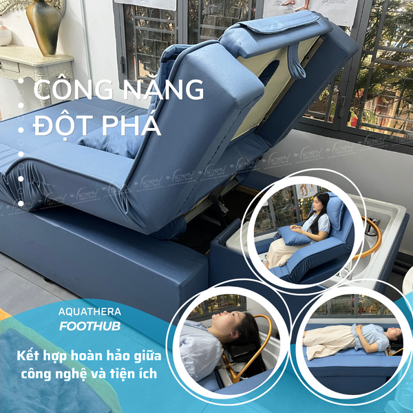 AquaThera FootHub không đơn thuần là một chiếc giường massage hay giường gội đầu thông thường. Đây là nền tảng thủy trị liệu (Hydrotherapy) đa tư thế thuộc hệ sinh thái AquaThera .